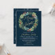 Holly Berries Wreath Winter Blue Christmas Party Invitation
