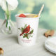 Cheerful red cardinal on a holly branch with red holly berries and white mistletoe. Personalise with your own message and name. Matching paper plates and napkins available.