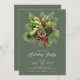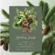 This elegant Christmas holiday party invitation features a beautiful pine, holly berries and pinecone arrangement set on a green background. The invitation is perfect for inviting your friends and family to a festive holiday gathering. The overall design is festive and sophisticated, and the invitation is sure to impress your guests.