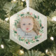 Holly Christmas Wreath Photo Baby First Christmas Glass Ornament