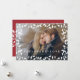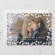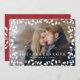 Simple and elegant holiday photo card frames your horizontal photo with a border of white holly leaves and berries. Personalise with a Christmas or holiday greeting (shown with "joy, peace, love") and your names beneath. Add an additional photo to the back on a festive cranberry red background with a stripe of matching holly foliage.