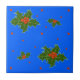 Holly (Ilex) Christmas Motif on Festive Blue Ceramic Tile