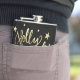 The flask itself is fine. It’s a cheap flask, obviously bought in bulk, however am prepared to overlook that. Given that it is a personalized item, I would have liked to have seen gift boxing instead of the generic packaging. Terrible printing, and/or quality. It’s a cheap, tacky vinyl. It is not cut straight and is also applied in a way that it is overhanging the bottom, causing the glue to catch on items and it will eventually roll and tear, damaging the wrap.