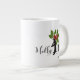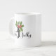 This design features a penguin holding a branch of holly among the words: Holly Jolly. The original humourous animal illustration makes a cute funny and unique Christmas season large coffee mug with name.