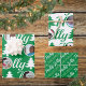 Create your own personalised Christmas wrapping paper with this photo collage template design in Holly Jolly green and white. Upload your photos into the round templates where they become the O in the HOLLY and JOLLY typography pattern, one in white on Christmas green and one in green on a background of classic white. Sprinkled in among the festive word art are simple Christmas trees as the perfect holiday accent. The third gift wrap sheet design is a simple repeat typography pattern filled with Holly Jolly and Deck The Halls alternating in white and a light sage on a background of holiday green. Up your holiday gift wrapping game with this custom Christmas wrapping paper sheet set in three assorted designs in traditional green and white and your personalised photos for a unique and elegant display under your holiday tree.