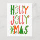 HOLLY JOLLY XMAS Lettering Holiday Christmas Postcard