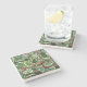 Protect your table top from water marks and stains with this decorative, stone beverage coaster with cork backing that features the photo image of variegated Holly leaves with bright, red berries. A fun, floral design for the holidays! Select your coaster stone style.