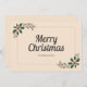 A simple and minimalist Merry Christmas holiday card with a discreet border, ornate on its two opposite corners with a delicate illustration of holly leaves, berries and pine branches, all on a beige background.
