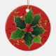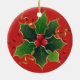 Brighten up your Christmas tree and give a touch of warmth and excitement of the holidays to your Christmas decoration with this charming circle ceramic Christmas tree ornament. Featuring a holly mistletoe in gold, green and red berries on a red background, this charming ornament is a perfect way to commemorate the holiday season with your family and makes a great gift for all of your loved ones.