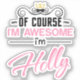 Holly Of Course I'm Awesome I'm Holly in mixed black and pink sans and decorative cursive font lettering with scroll embellishments and topped a golden crown.