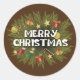 Holly Pine Tree Decoration Merry Christmas Classic Round Sticker