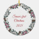 Watercolor holly, berries and pinecone wreath will accent your favourite photo beautifully. On the reverse side you can personalise it to say your child's name then first Christmas and the year.