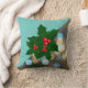 Christmas holiday throw pillow with holly tree berries on a blue and bokeh background. Great holiday Christmas pillow for a Christmas festive feeling or a gift for family and friends.
