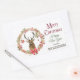 Holly Wreath Red Bow Reindeer Christmas Rectangular Sticker