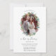 The design features watercolor holly wreath with your custom photo. The word Christmas is in grey slanting modern script font. Personalise this card with your own details and photo.