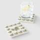 The coasters are gorgeous, a quality feel and heavy weight. They look like a precious archeological find. A rustic stone juxtaposed with a modern floral black and white print. I like the way the print goes slightly imperfect on the cut stone edges giving them a kind-of natural beauty.