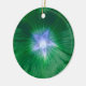 This pretty pendant style ornament features a close up of a photograph of a beautiful hollyhock flower that has been artificially coloured resulting in a deep green colour with a pale blue centre. The original photo was taken using macro photography resulting in a stunningly detailed image. There is customisable green text on the back of the ornament so you can personalise it.