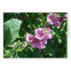 A great floral notecard. Elegant pink hollyhocks surrounded by bright green foliage.