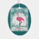 Hollywood Florida Pink Flamingo Retro Ceramic Ornament