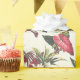 The pattern features red caladium and white orchid flowers, Sansevieria (snake plant) and large leaves and fern foliage. This particular pattern is called "Arcadia."