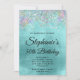 Holo Glitter Pale Aqua Blue Foil Fancy Monogram Invitation