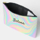 Compact yet impactful, the holographic accessory pouch is a must-have addition to any fashion-forward individual's collection. Crafted from high-quality materials, its exterior boasts a mesmerising holographic finish that catches the light and dances with iridescent hues, making it a captivating sight to behold.