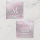 Holographic Brushed Pink Modern Monogram Elegant Square Business Card