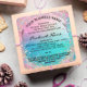 Holographic Cookies Cottage Law Label in a modern black and pastel holographic design with elegant calligraphy font, space for your business name, address, cookie flavour, ingredients and allergens. Please be sure to edit all text to suit your needs and be compliant with your local food regulations. Each state and country has its own specific rules, the placeholder text is a guide only. Use these bakery stickers to create branded food license ingredients labels for your homemade cookies.