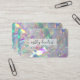 This iridescent business card showcases a captivating holographic crystal design inspired by zoomed-in iridescent tinsel, resulting in an abstract, prismatic effect. Ideal for professionals in beauty, fashion, and creative industries seeking a modern and eye-catching aesthetic. Personalise with your details to leave a memorable impression.