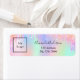 A trendy holographic background with unicorn colours and rainbow colours in pink, purple, mint green. Decorated with drips pink and purple. Personalise and add your business logo, name and address.