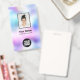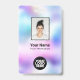 Easily personalize this Custom Holographic Pastel Employee Name Badge with Photo, Scan Bar Code and business logo. A colorful cute business design in baby pastel colors fully customizable in front and back sizes, sans-serif basic and modern fonts and a professional and clear look. Avaiable with lanyard, metal clip or with retractable. No minimum order.