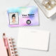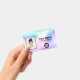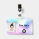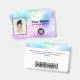 Easily personalise this Custom holographic Employee Name Badge with Photo, Scan Bar Code and business logo, with metal clip, retractable or lanyard included. A simple business design in rainbow pastel holographic colour shades and white colours fully customisable in front and back sizes, sans-serif basic and modern fonts and a professional and clear look. Avaiable with or without lanyard, metal clip or with retractable. No minimum order.