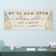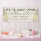 Holographic Glam Glitter Salon Opening Banner. This design features a classy signature script style font set against a beautiful modern iridescent sparkle background. Perfect for a beauty salon, hair stylist, makeup artist, or cosmetologist.