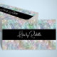 A business card with a faux holographic glitter and black background. The front has space for your name or your company name. The back has space for your contact information.