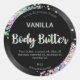 Body butter labels with holographic glitter styled text and border. PLEASE NOTE: These labels will not have any glitter on them. They will not shine or reflect any light or colour. The shiny decals will be printed onto this sticker with standard, non shiny ink.