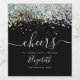 This elegant but modern design has holographic glitter against a black background and the words read Cheers To Turning Fifty & Fabulous. You can amend the message and add her name and birthday.