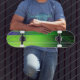 Holographic Green and Black Sci-Fi Panel Skateboard