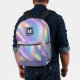 Own your style with our Name Customisable Holographic Iridescent Backpack. Bursting with vibrant colours, this backpack is a bold statement in individuality. Personalise it with your name for a unique touch!