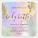 Contemporary modern abstract alcohol ink holographic glitter gold script product label design.