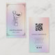 Elevate your beauty brand with this luxury iridescent makeup artist business card featuring a minimalist brush and lipstick illustration. Designed with a soft holographic pastel gradient, this modern QR code business card is perfect for professional makeup artists, bridal MUAs, lash technicians, estheticians, and beauty entrepreneurs.