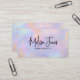 Holographic opal blush rose gold business card design template. Features simple classy calligraphy typography graphic design and trendy holographic background. Personalise for a custom professional business card for your customers and clients.
