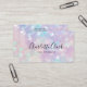 Trendy and modern, this holographic business card features your name or business name in script typography set against a stylish iridescent opal glitter background. It is perfect for professionals in the beauty industry and beyond (esp. nail specialist, nail technician, manicurist, makeup artist, beauty salon owner, hair stylist, beautician, aesthetician, and more). You can personalise the front with your name and title (or website address/location) and add your contact information (including website address and social media accounts), scannable QR code on the back.