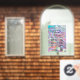 Holographic, professional Business opening hours logo and qr code window cling sign for salons and beauty shops.