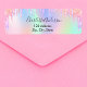 A trendy holographic background with unicorn colours and rainbow colours in pink, purple, mint green. Decorated with drips in pink and purple. Personalise and add your name and address. Perfect for a bridal shower, baby shower or birthday party invitations, marking your school belongings.