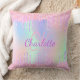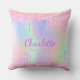 Holographic pink purple glitter drips monogram cushion