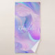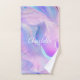 Holographic pink purple monogram initials name bath towel set