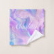 Pink, purple, blue holgraphic background. Personalise and add your name and monogram initials. The name is written with a hand lettered style script.