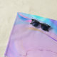 Pink, purple, blue holgraphic background. Personalise and add your name and monogram initials. The name is written with a hand lettered style script.