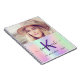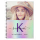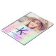 A holographic background, pink,purple, mint. Personalise and add your own photo, a name, monogram letter and a year. The name is written with a large modern hand lettered style script with swashes. For school, work, diary and journalling. To keep the swashes only delete the sample name, leave the spaces or emoji's in front and after the name