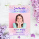 A modern and elegant Save the Date for a Sweet 16. Holographic, pink, purple background with confetti. Personalise and add a photo, date and name.